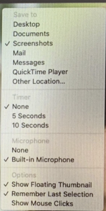 1. Click the Options button and make sure your built-in microphone is checked. If you don’t check this, the audio will not record.